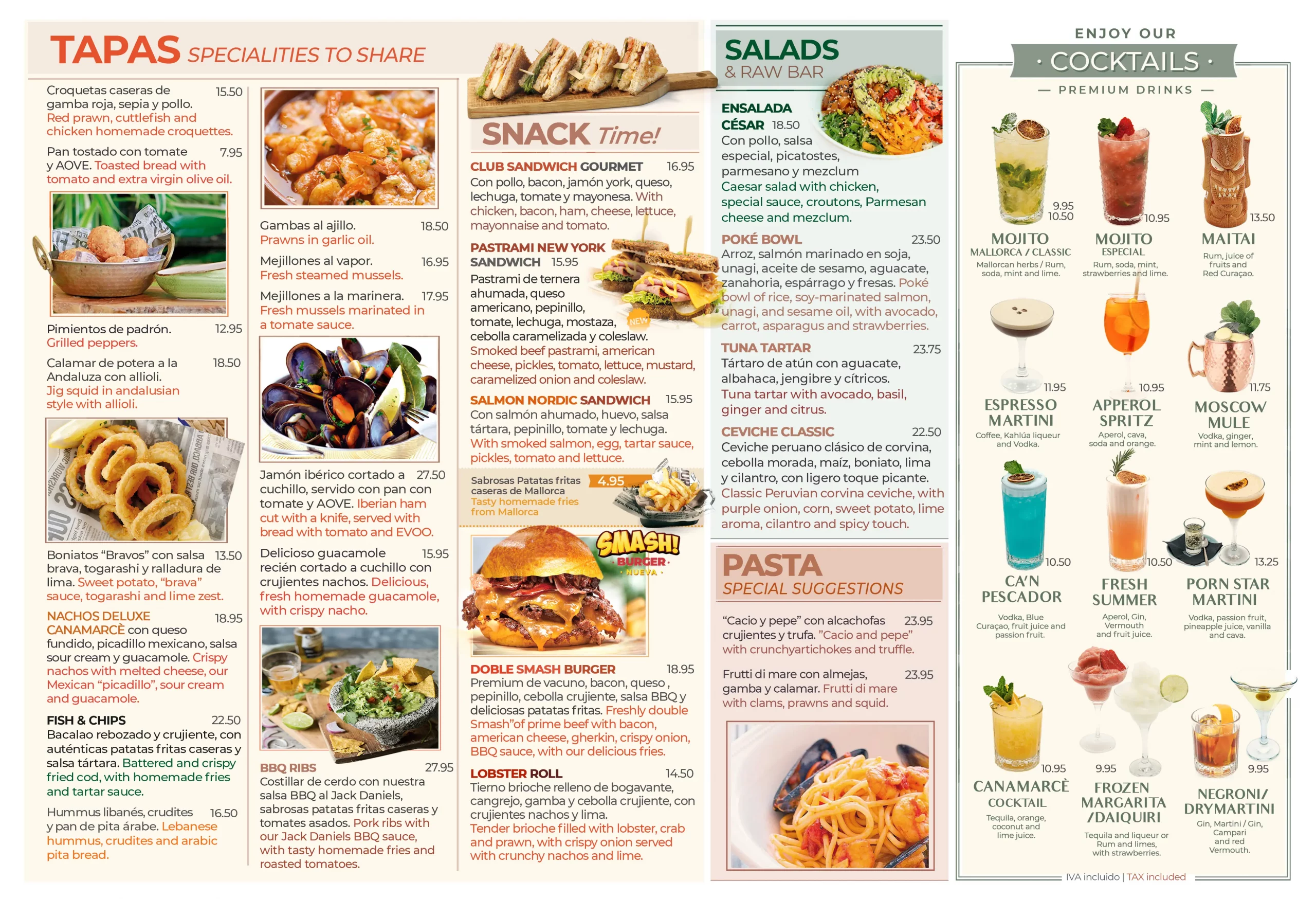 A leisurely breakfast, snacks with friends, a super cool smoothie, or a full-blown celebration… In our restaurant in the heart of Puerto de Alcudia, facing the sea, you’ll find a menu for every moment of the day: brunch, snacks, desserts, ice cream, smoothies, and group menus, designed for every occasion. Don’t hold back and come enjoy the Mediterranean flavor, at your own pace and with views of the bay.